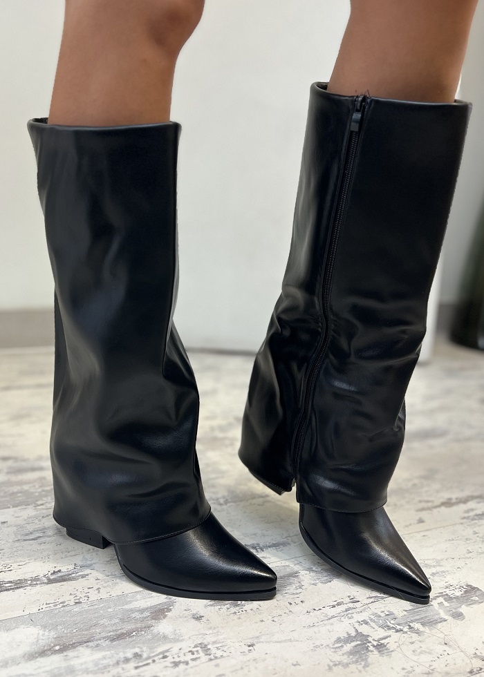 Μπότες μαύρες με εφέ αναδιπλούμενης φάσας