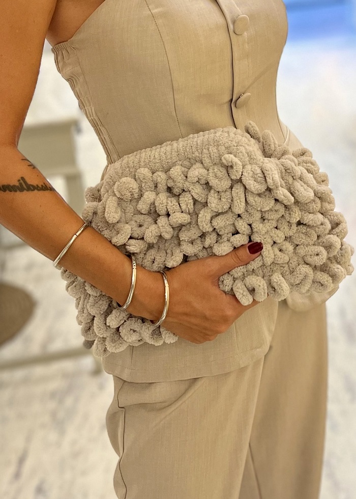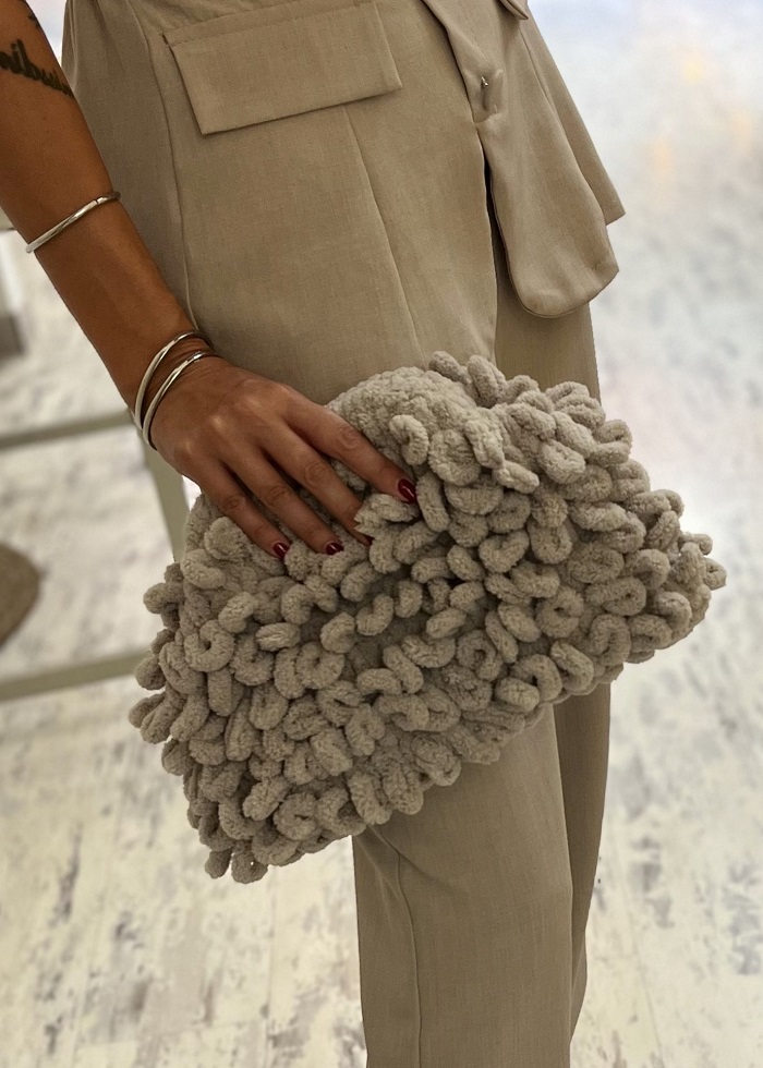 • Χειροποίητη τσάντα ώμου με αφράτη puffy υφή