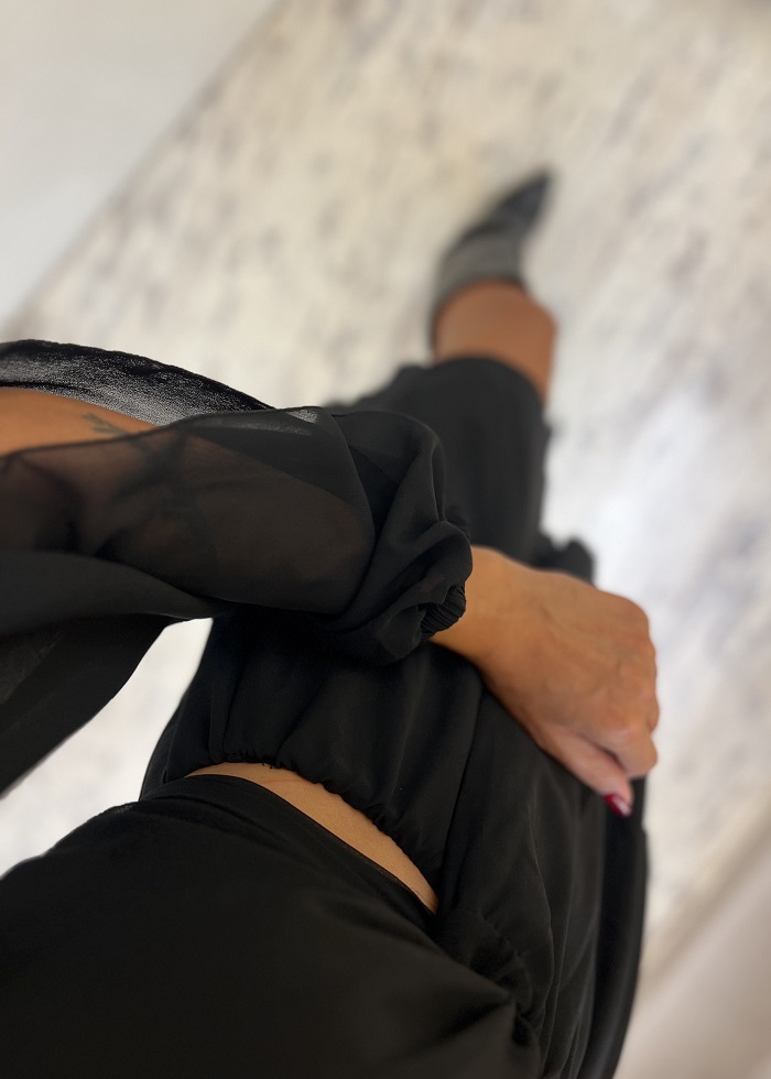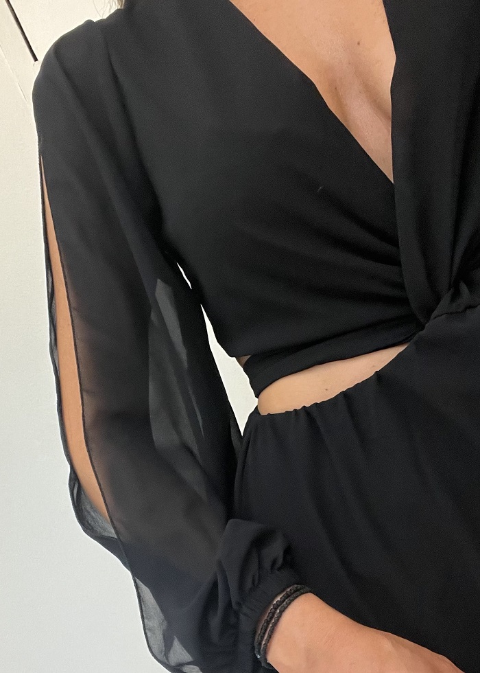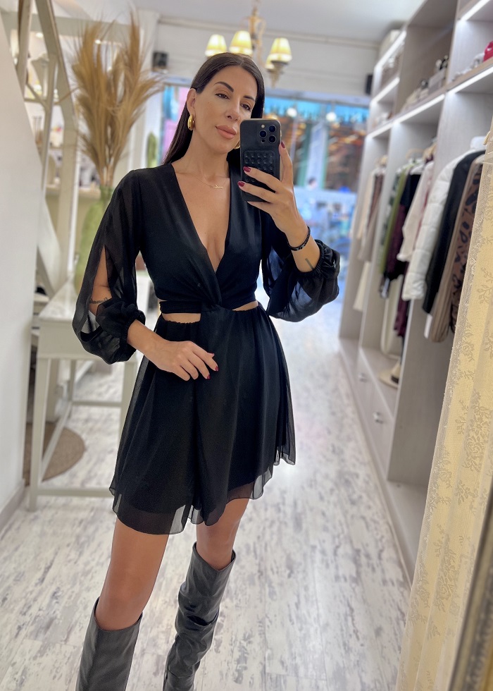 Φόρεμα μαύρο με κοψίματα – cut out στη μέση και στα μανίκια