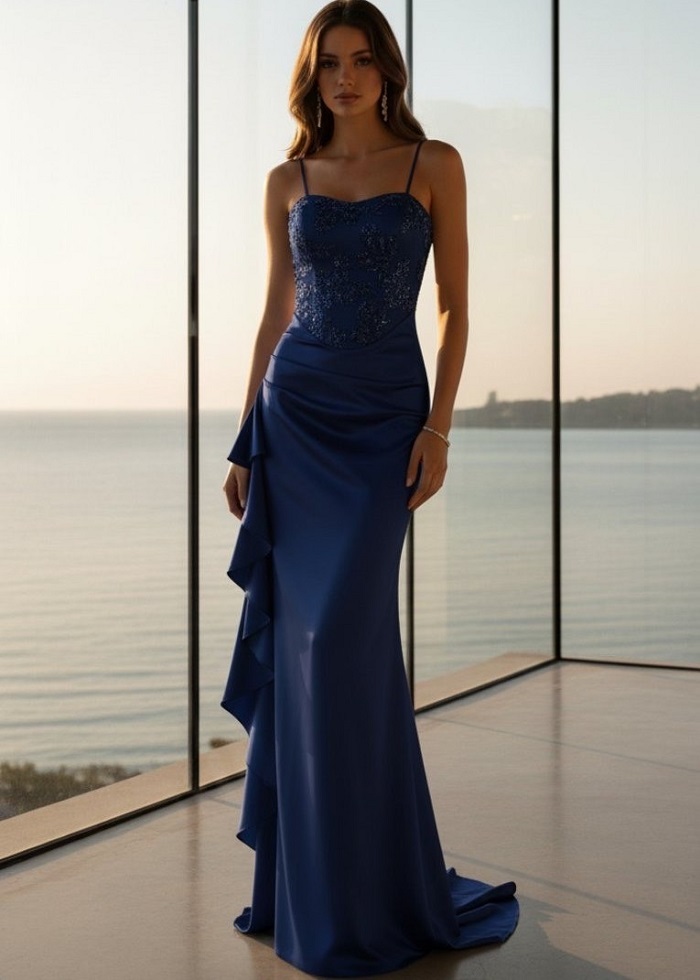 Φόρεμα maxi με βολάν στο πλάι, στο μπούστο έχει παγιέτα