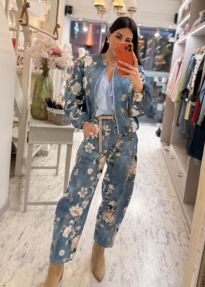 Deriak παντελόνι τζιν βαμβακερό φλοράλ