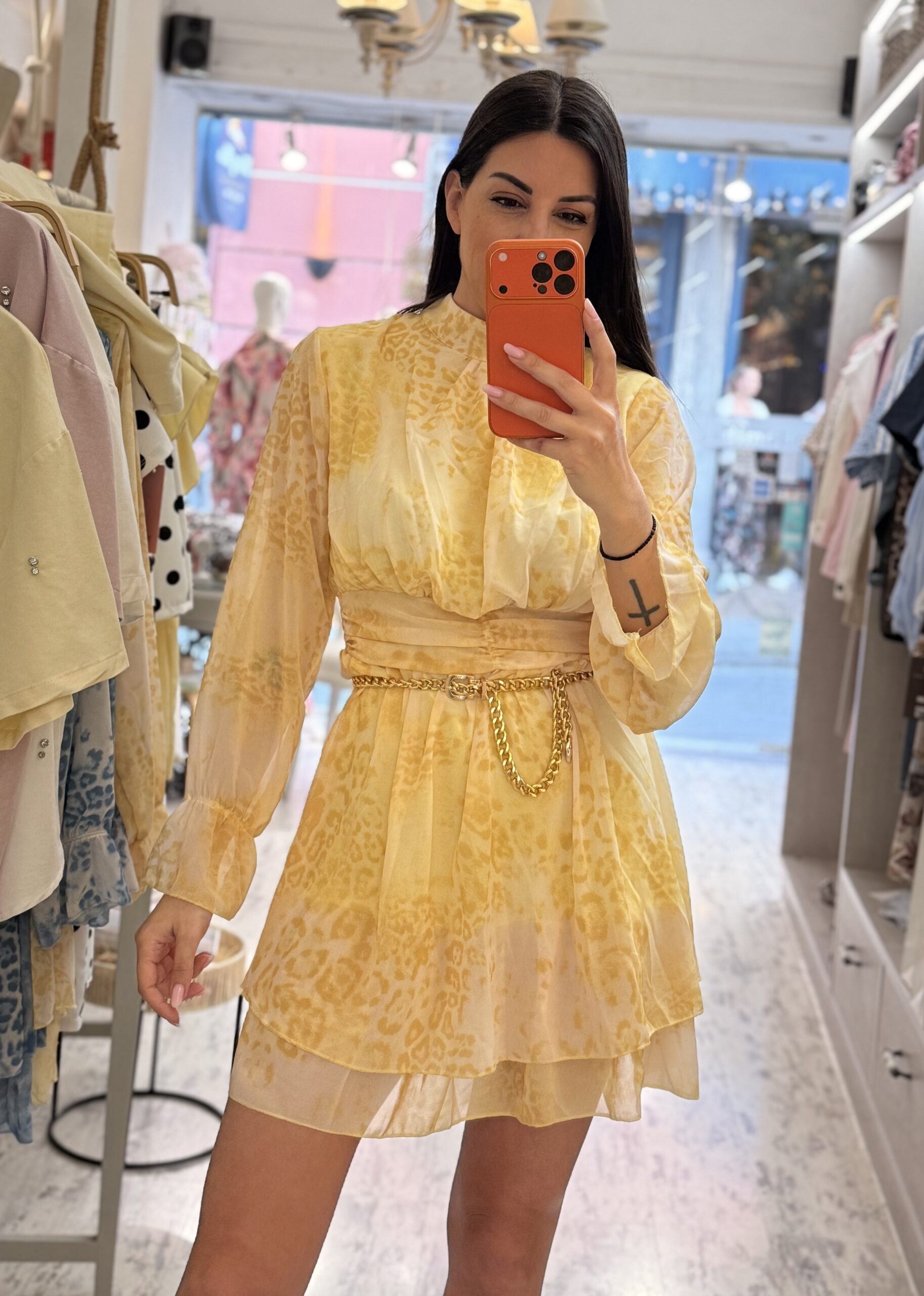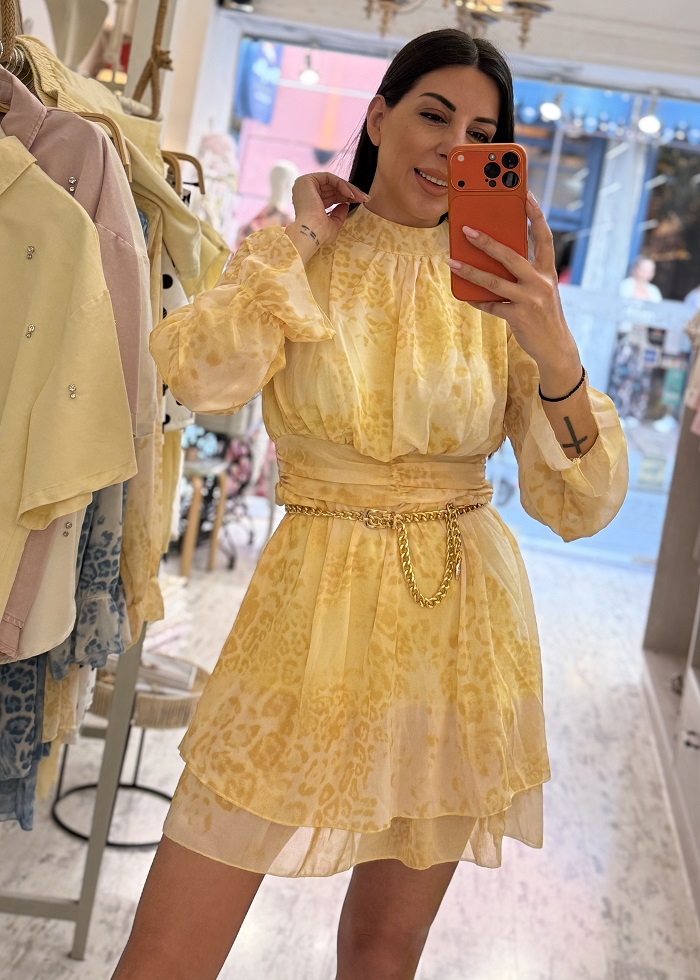 Eriaka φόρεμα λεοπάρ κίτρινο