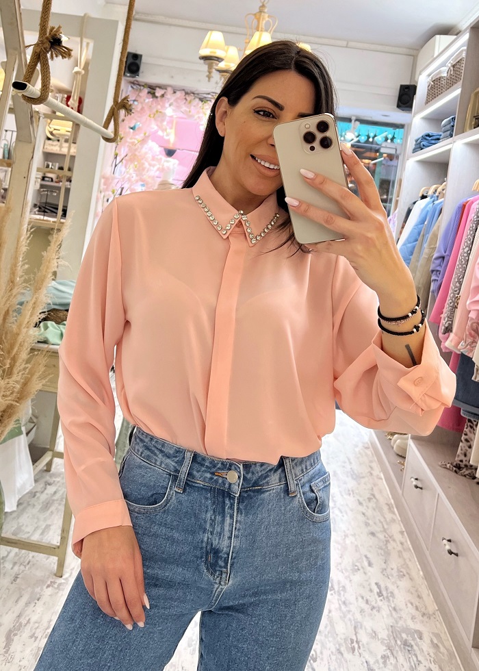 Πουκάμισο σομόν με στρας στο γιακά