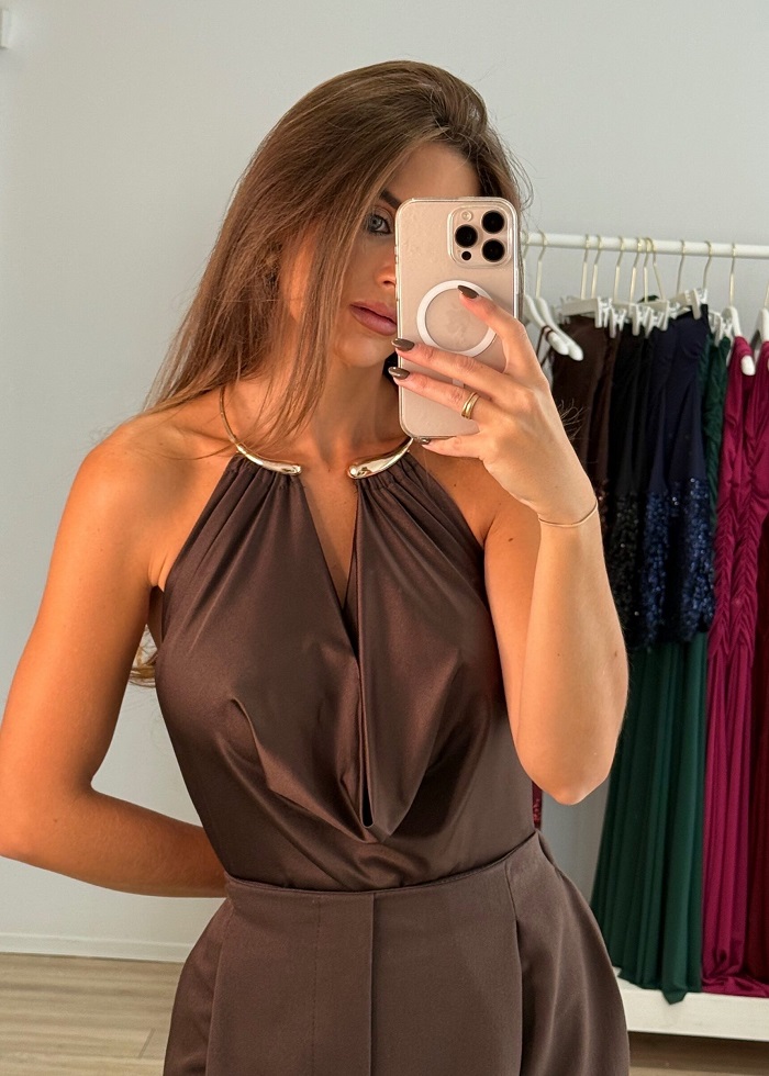 Lora κορμάκι καφέ με κόσμημα στο λαιμό