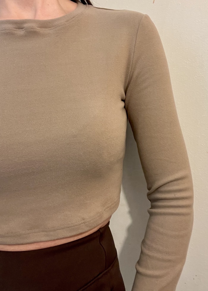 Τοπ κοντό φλις με στρογγυλή λαιμόκοψη και μακρύ μανίκι.