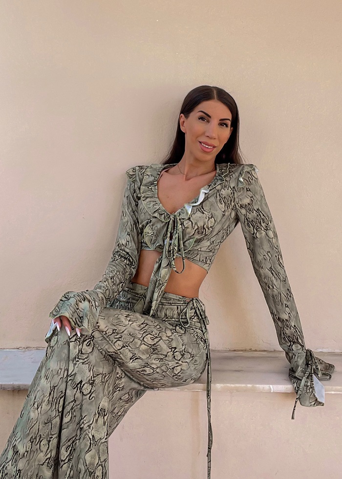 Snake σετ τοπ – φούστα maxi χακί