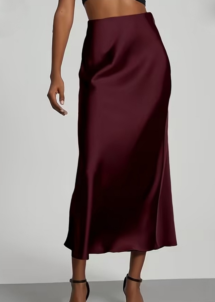 Vinde φούστα σατέν midi μπορντό