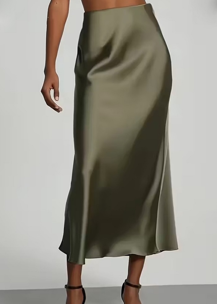 Ψηλόμεση φούστα σατέν midi με λάστιχο στη μέση